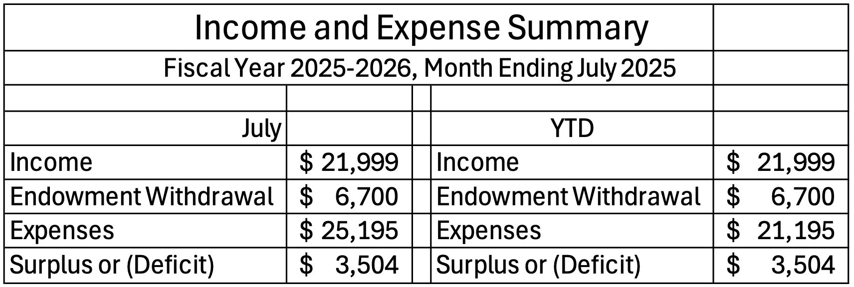Income and Expense Summary