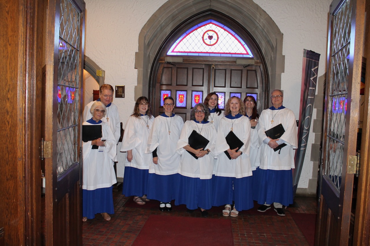 The choir prepared to process to "We All Are One in Mission," the gathering hymn.