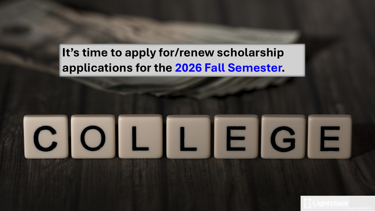 It's time to apply for, or renew, scholarship applications for the 2026 fall semester.