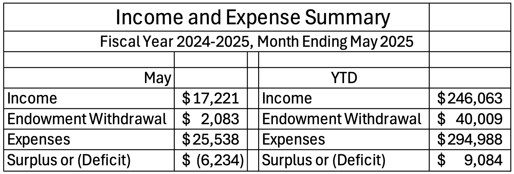 Income and Expense Summary